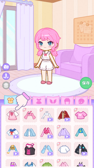 1、进入游戏,点击开始为游戏中的主角选择服饰,多个服饰供你选择,点击保存。