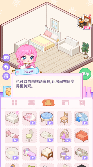 装修自由无束缚,解锁数十种装修风格与海量精致家具,从简约ins风到中式古风应有尽有,家具可自由调整位置、角度,无需遵循固定模板,充分释放玩家设计创意。