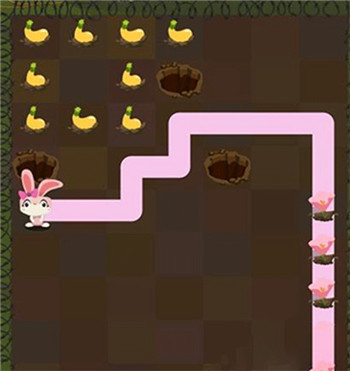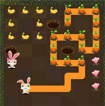 2、兔子们报复的方法就是吃光农场里的菜,实现手段则是采用一笔画成的思想,要求玩家用手划出一条不能交叉、不能回头的吃菜之路。游戏里,我们要从兔子所处的位置出发,沿路吃掉所有挡路的蔬菜,直至终点的小土洞。