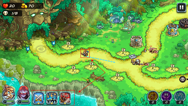 7、玩家可以点击英雄或长按画线控制英雄移动,也可以释放额外卡牌技能。