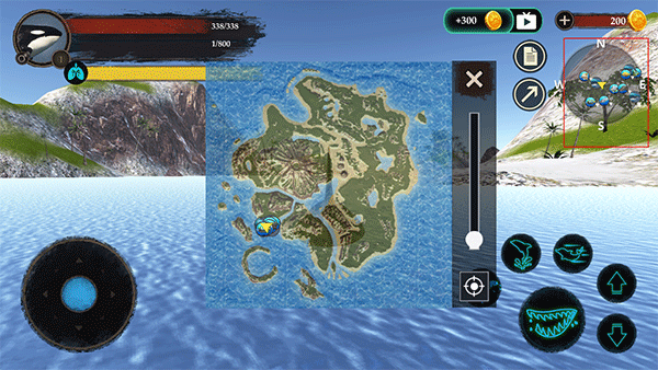 2、左边移动摇杆按钮可以操控虎鲸的行动,右边可以控制虎鲸的动作,比如喷水、跳跃、攻击等