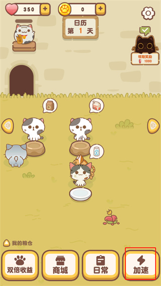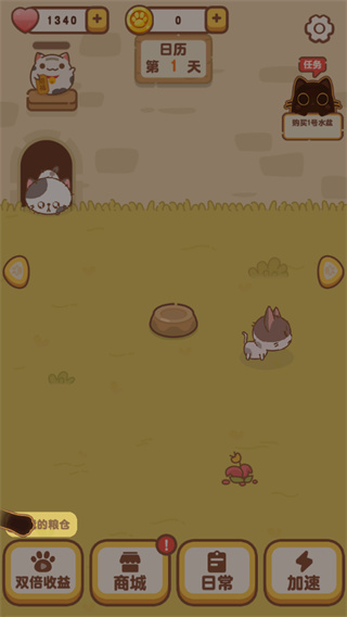 1、双击打开我的萌猫游戏,开始游戏前玩家需要点击商场来购买碗喂食猫咪;