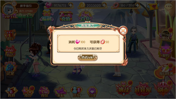 要是体力不足又急切需要的时候该怎么办呢?叶罗丽手游贴心为你准备了钻石购买方式来获得额外体力!