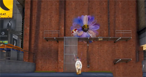 1、在游戏中到达cos打会的右边,找到第一个涂鸦。