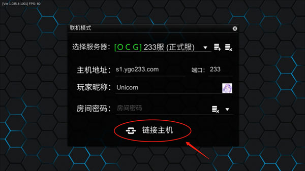 2、选择服务器、主机地址和玩家昵称,点击【衔接主机】。