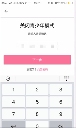 输入你设置的独立密码,点击下一步就可以关闭模式了。