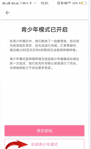 如果青少年模式已经开启了,在打开的界面中,直接点击下面的关闭模式,