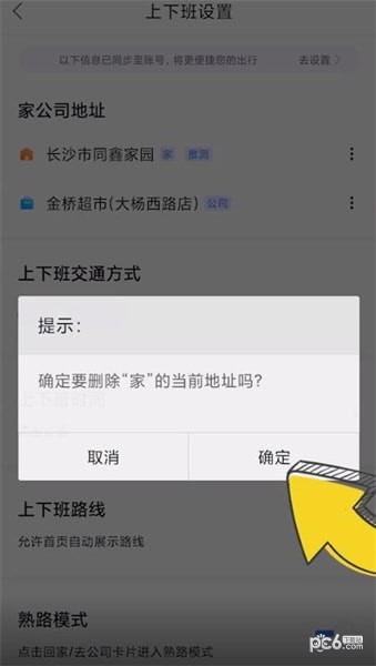 点击家地址右侧的三点符号,选择【删除地址】,点击【确定】就可以了。