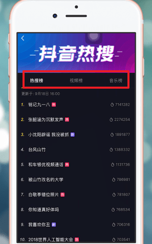 这里有最热的【搜索】、【视频】和【音乐】的排行榜,选择你感兴趣的分类进行查看即可。