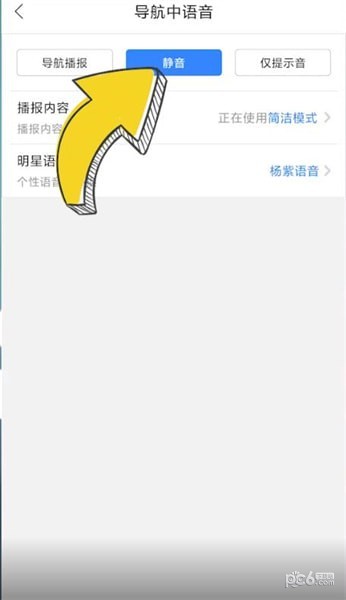点击【导航中语音】,选择【静音】就可以了。