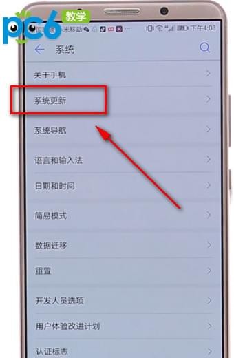 2.然后点击系统更新,