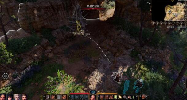 1、我们先来到路边悬崖正上方的山谷里这个位置,就可以看的到困在笼中的莱埃泽尔了。
