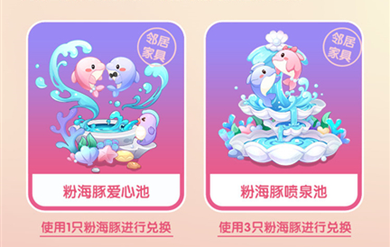 1、粉海豚可以用于在游戏中兑换奖励,比如粉海豚爱心池,使用1只粉海豚进行兑换,呈现出爱心的形状。