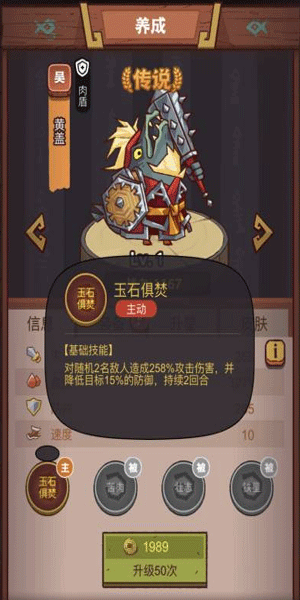 黄盖:血量550亿,大招攻击随机2名敌人附带减防御,普通攻击变为攻击前排敌人。