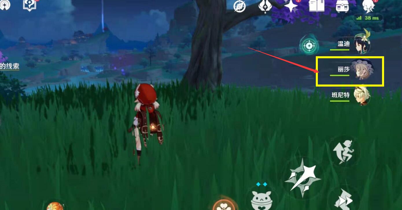 2、面前有个透明偏紫色的绯樱绣球,将角色切换成丽莎;