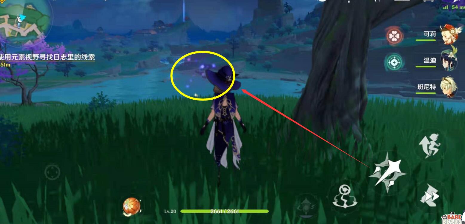 1、首先传送到鸣神社的传送点,然后飞到下图标记点位;