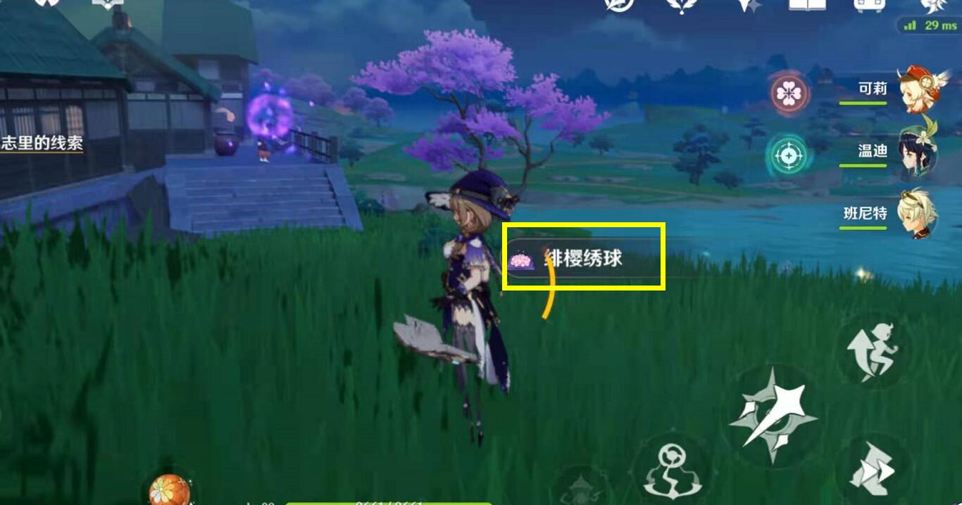 4、最后再靠近绯樱绣球,即可成功点击获取。