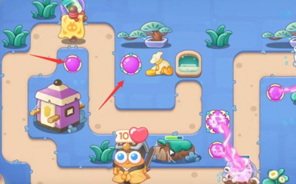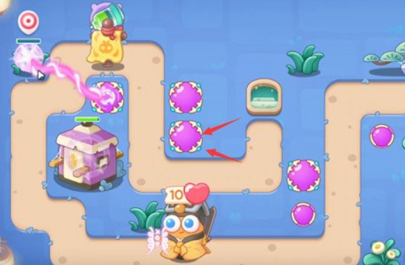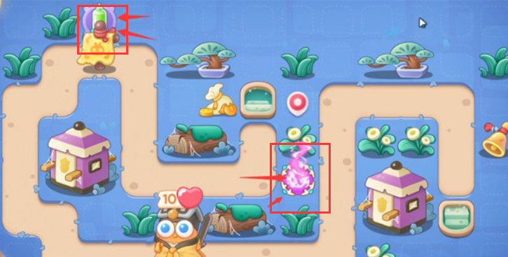 2、放置2个魔法球,兔子进传送门前,优先清理掉障碍物。