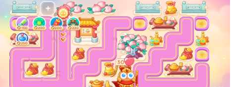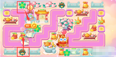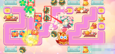 6、具体炮塔如下图,先把左侧放满,在放右边,注意炮塔尽情不要单独放置,这一关有吊索兔。