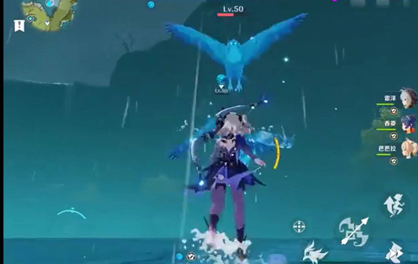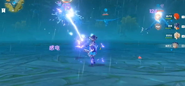 2、由于奥兹能打出雷元素伤害,所以可以让飞鸟感电,很好击杀。