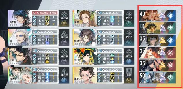 记忆烙痕5张自备+1张借用、R卡最好40级、SR和SSR至少三十五级。
