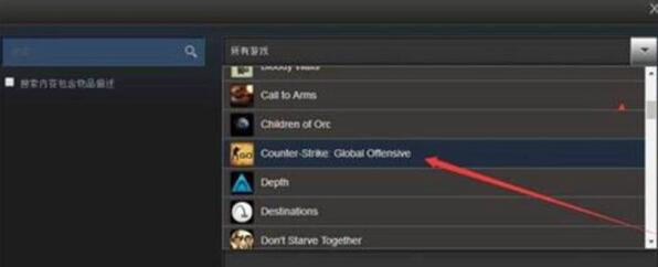 3、接着在选项栏中搜索选择CSGO。