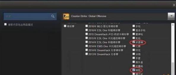 4、再进行搜索选项的设置,选择其中的武器箱和钥匙选项进行勾选。