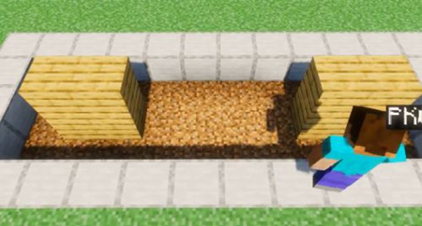 1、想要建造自动红石活塞门需要一款3×10的区域,然后朝下面挖一格。