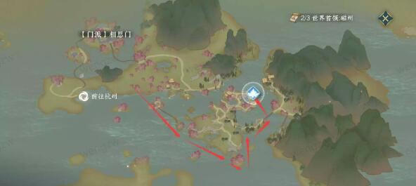 2、之后推进剧情,到去桃花坞那段,首先先点开江湖门派—相思门—执剑人传送到桃花坞;