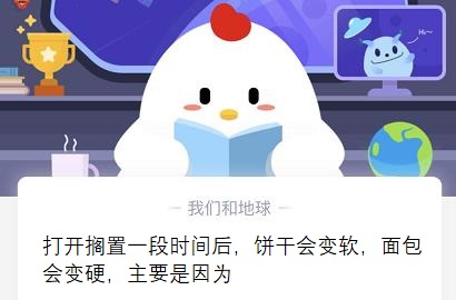 支付宝蚂蚁庄园小课堂11月16日的第二个问题是:打开搁置一段时间后,饼干会变软,面包会变硬,主要是因为?下面小编就为大家带来蚂蚁庄园今日答案,一起来看下正确回答吧。