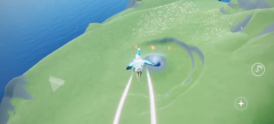 2、然后在瀑布旁边的喷泉有个先祖,我们先把空中光标全部收集;