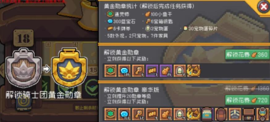 以上就是有关元气骑士前传黄金勋章怎么获得的所有内容,需要先解锁骑士团勋章在进行购买升级为黄金勋章。