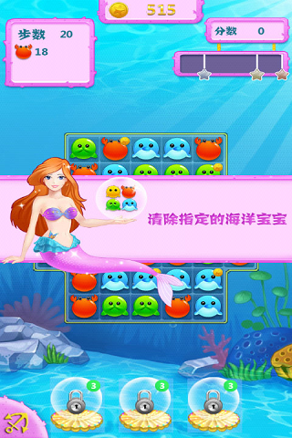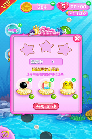 N多关卡,超长游戏时间,可爱甜蜜的游戏风格,超Q超萌的海洋宝宝陪你一起欢乐泡泡消。消灭星星的玩法一看就会,配合多种强大神奇的道具,给你不一样的游戏体验。超多关卡,玩法不同,每关都有新内容,让你永远玩不够。 标准模式:点击两个或更多相同的星星可以消除它们。一旦你开始玩,就不会再放手!你同时消去的星星越多,就能得到越高分;最后剩下的星星越少,得到的奖励也就越多,你需要经过仔细思考,才能得到更高的分数。可以说就是消灭星星的关卡版,不过要消除规定的方块个数才能过关哦。