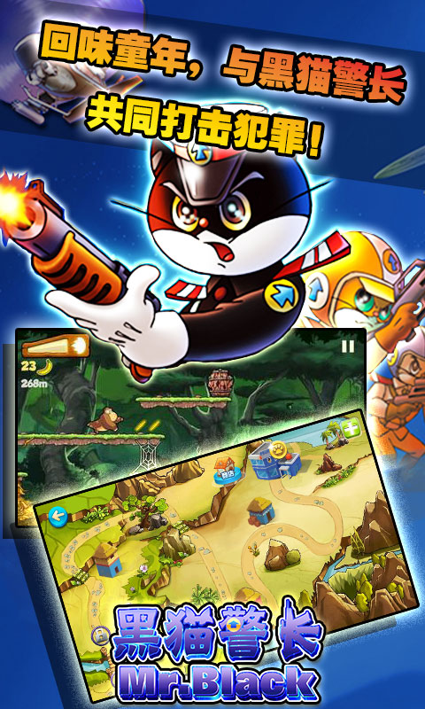 《黑猫警长》是由经典中国动画片改编。在游戏中,机智、勇敢、帅气的黑猫警长率领警士侦破了一个又一个危害森林安全的案件,令森林中的各种动物得以过上安枕无忧的日子。跟随黑猫警长一起追寻童年记忆中最美好的部分!