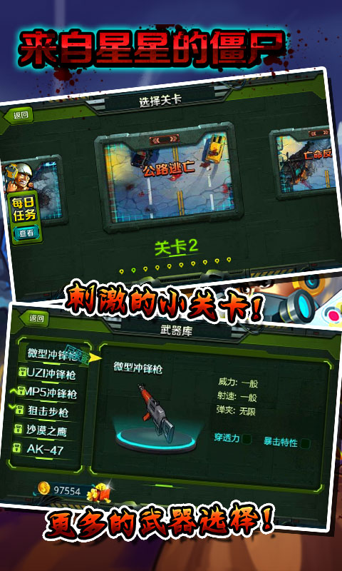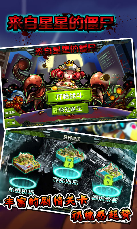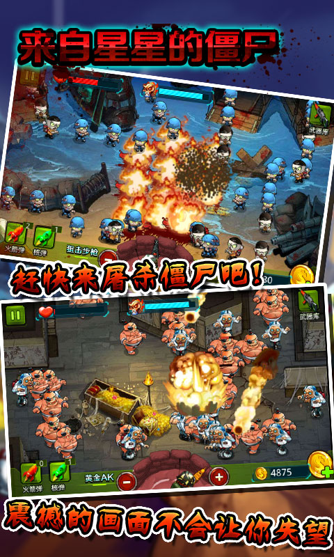 《来自星星的僵尸》是一款刺激的射击动作游戏,在史诗般的背景音乐中,感受枪弹和血浆的交响曲!世界在等待英雄拯救,黎明在等待星火点燃!
