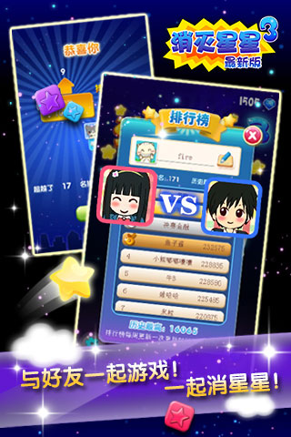 《消灭星星3》是消灭星星系列新作。新版本中,消灭星星华丽转身,游戏品质大幅提升,新鲜玩法层出不穷,一个新的星星强势回归。本版本在保持原汁原味的玩法基础上,升级了游戏画面,强化了游戏体验,增加多个新鲜玩法。画面、音效、玩法完美搭配;无尽关卡、给力道具、丰富奖励一个都不少。更新增排行榜系统,无论线上线下都可以与小伙伴们一起游戏,一起分享消灭星星的无尽魅力。