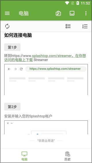 Splashtop Personal 仅供非商业用途使用,例如,因工作以外的需求而进行访问个人电脑。