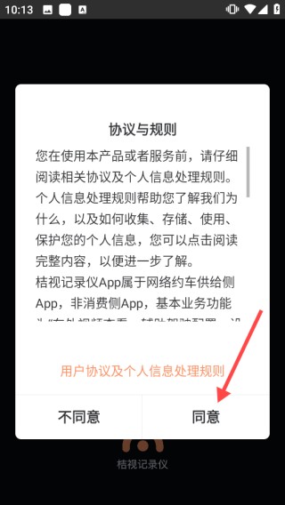 1、打开软件,根据页面弹窗提示,点击【同意】。