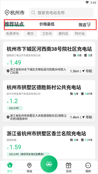 3、可以根据自己的位置使用智能推荐功能,软件会自动帮你找到最佳的充电站。