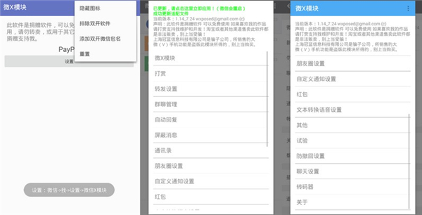 1、具有自动抢红包,一键转发朋友圈小视频、图片、文字,转发语音。