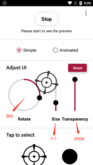 3、在tap to select可更换准星的外观以及颜色。