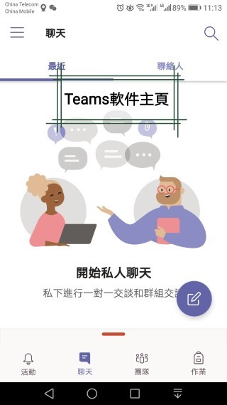 软件介绍画面完后出现Teams软件主页,如下图所示:
