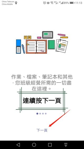 3、登入成功后会出现软件介绍画面,连续单击「下一页」,最后单击「了解」,如下图所示: