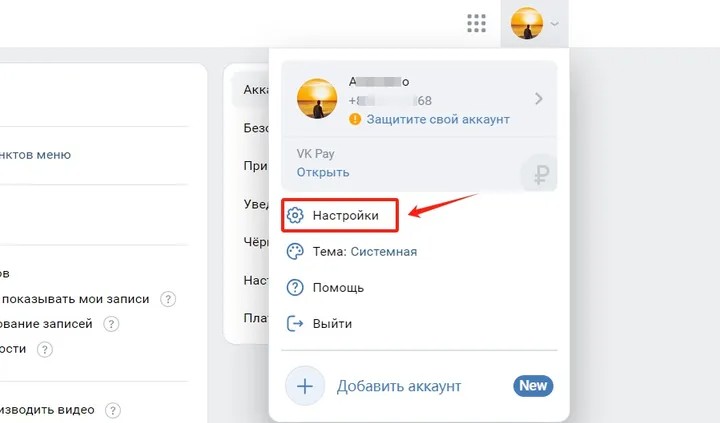 第一步,点击自己的vk头像,然后弹出如图的页面,选择设置。