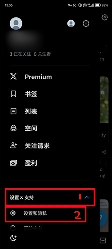 2、在侧栏中展开“设置&支持”选项,点击“设置和隐私”。