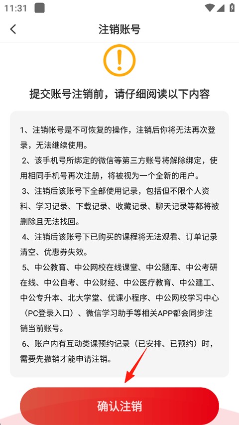 3、阅读下方注销细则,确认无误后点击确认注销按钮;