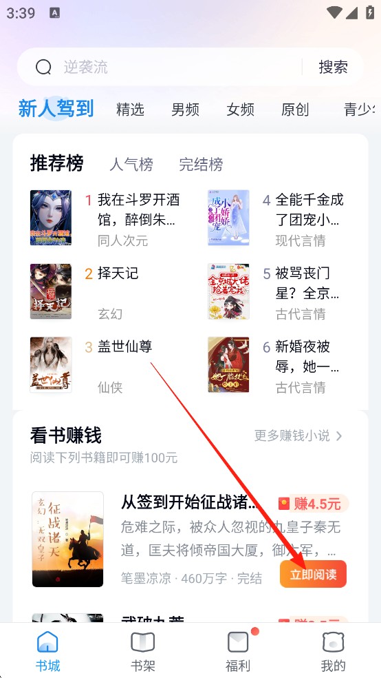 2、【优质内容】大量完结、连载、出版小说,品质最优。