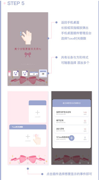 “样式”中可设置各种可爱外观,长按事件可拖动排序。
