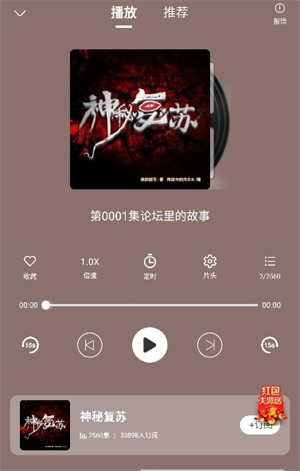 4、根据需要调节听书的速度,跳过片头片尾,一键定时。