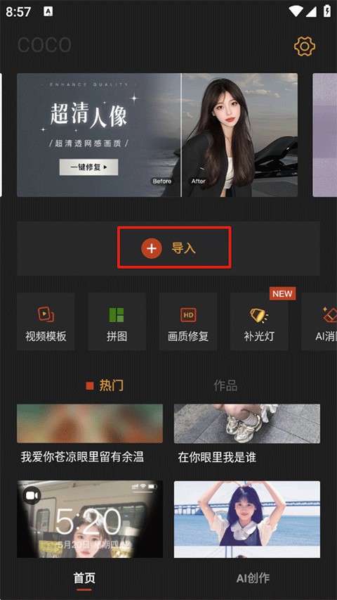 1、在本站下载安装可可修图正版app并打开,点击导入,把需要编辑的照片导入到软件中;